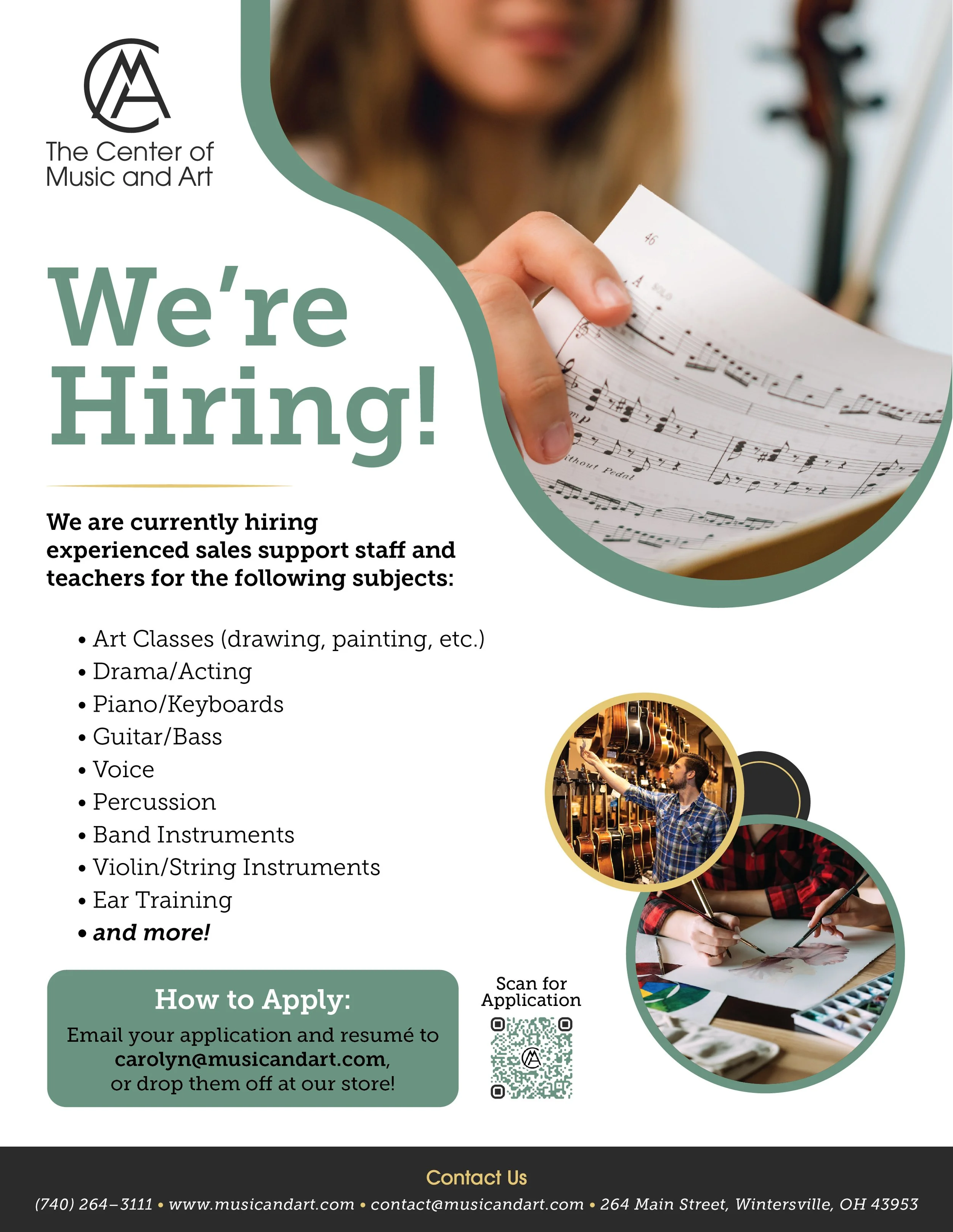 We are always looking for qualified friendly and professional teachers. Interested? Download our application and send it to contact@musicandart.com along with your resume!
